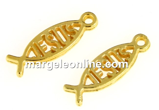 Charm simbol Hristic, auriu, dimensiune: 16x5mm. Pretul este pentru 10 bucati.