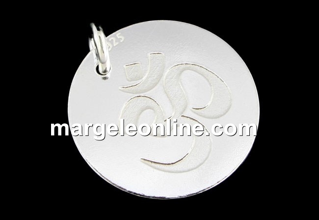 Charm simbol om, simbol promordial a inceputului existentei, argint 925, dimensiune: 16.5mm. Produsul poate fi folosit ca atare sau poate fi personalizat prin gravare pe verso. Pretul este pentru 1 bucata.