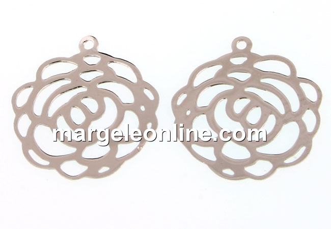 Charm argint 925 placat cu rodiu, trandafir, dimensiune 14x12.5x0.2mm. Pretul se refera la 1 bucata.
