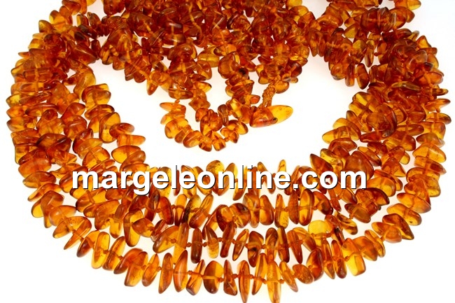 Colier din margele chips de chihlimbar natural, dimensiune variabila progresiva chips: 8-13mm, lungime totala colier: 4 siraguri de 65cm. Pretul este pentru 1 colier.