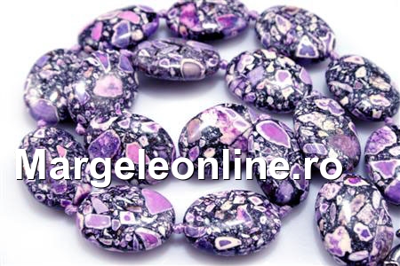 Colier cu margele din magnezit, incorporate in rasina lucioasa, forma: oval, marime: 25x19x9mm. Pretul se refera la 1 colier de 50cm (17 margele) cu incuietoare rezistenta din inox .