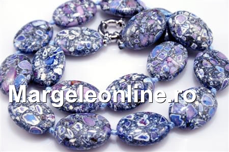 Colier cu margele din magnezit, incorporate in rasina lucioasa, forma: oval, marime: 25x19x9mm. Pretul se refera la 1 colier de 50cm (17 margele) cu incuietoare din inox decorativa rezistenta .
