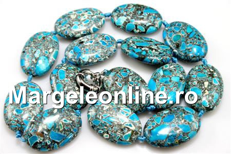 Colier cu margele din magnezit, incorporate in rasina lucioasa, forma: oval plat, marime: 30x20x8.5mm. Pretul se refera la 1 colier de 50cm (14 margele) cu incuietoare din inox decorativa rezistenta .