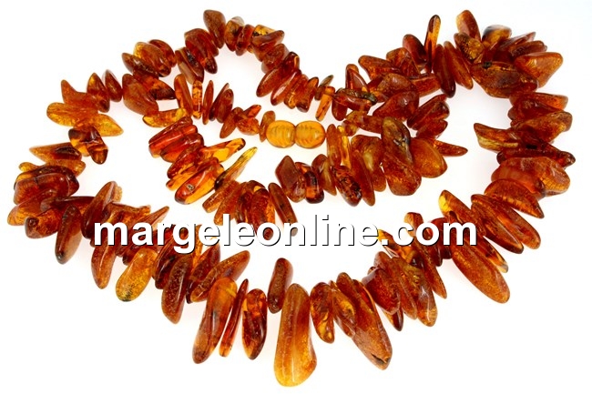 Colier din margele chips de chihlimbar natural, dimensiune variabila progresiva chips: 10-23mm, lungime totala colier: 50cm, prevazut cu incuietoare cu filet. Pretul este pentru 1 colier.