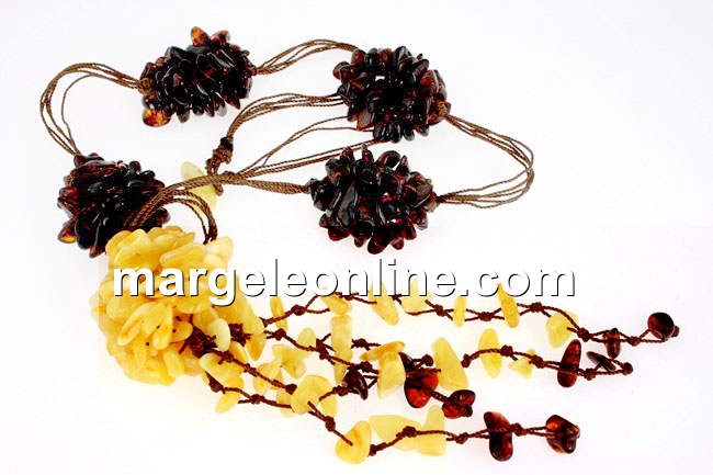 Colier din margele chips de chihlimbar natural, dimensiune variabila progresiva chips: 6-10mm, lungime totala colier: 60cm, prevazut 5 buchete chihlimbar. Pretul este pentru 1 colier.