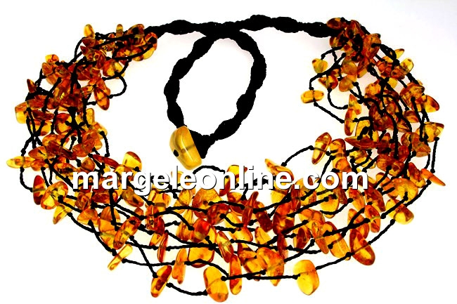 Colier din margele chips de chihlimbar natural, realizat pe 10 randuri, dimensiune variabila progresiva chips: 6-14mm, lungime totala colier: 50cm. Pretul este pentru 1 colier.