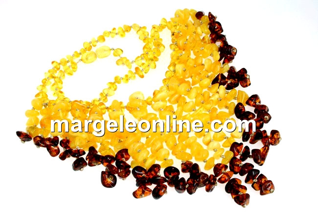 Colier din margele chips de chihlimbar natural, dimensiune variabila progresiva chips: 7-10mm, lungime totala colier: 45-46cm, prevazut cu incuietoare cu filet. Pretul este pentru 1 colier.