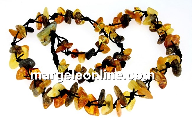 Colier din margele chips de chihlimbar natural, dimensiune variabila chips: 7-12mm, lungime totala colier: 50cm. Pretul este pentru 1 colier.