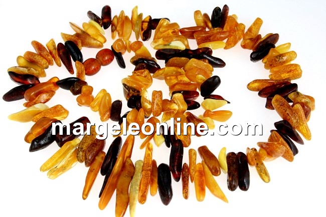 Colier din margele chips de chihlimbar natural, dimensiune variabila progresiva chips: 7-22mm, lungime totala colier: 49-50cm, prevazut cu incuietoare cu filet. Pretul este pentru 1 colier.