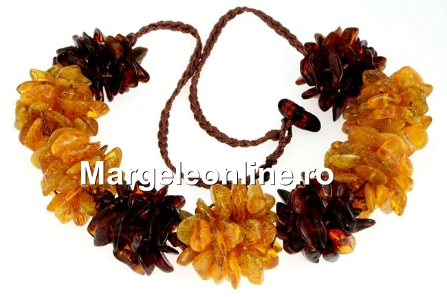 Colier din margele chips de chihlimbar natural, dimensiune variabila progresiva chips: 8-11mm, realizat cu 9 buchete cu diametru: 27-33mm. lungime totala colier: 50cm. Pretul este pentru 1 colier.