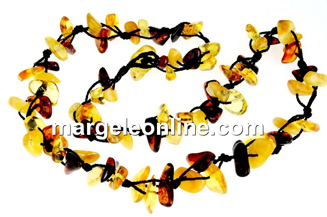 Colier din margele chips de chihlimbar natural, dimensiune variabila chips: 8-12mm, lungime totala colier: 50cm. Pretul este pentru 1 colier.
