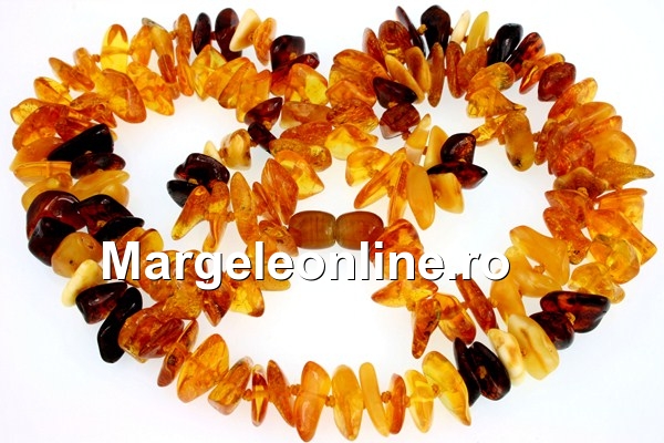 Colier cu margele chips din chihlimbar natural , forma: colier chips, marime: 12-14x4-5mm. Pretul se refera la 1 sirag cu incuietoare in lungime de 72cm .