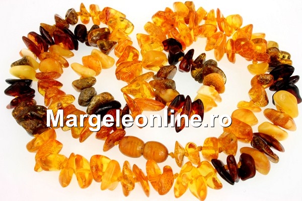 Colier cu margele chips din chihlimbar natural , forma: colier forma neregulata, marime: 12-14x4-5mm. Pretul se refera la 1 sirag cu incuietoare in lungime de 68cm .