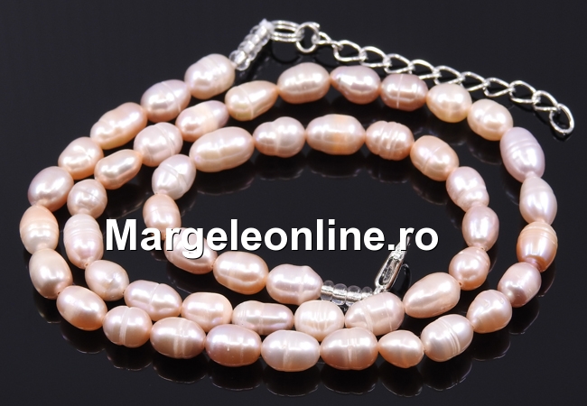 Colier din Perle de cultura naturale, lungime colier perle: 42cm, lungime totala cu lantisor de extensie inclus: 50cm , marime perle: 8-10mm, aspect: perlat lucios. Pretul se refera la 1 bucata.