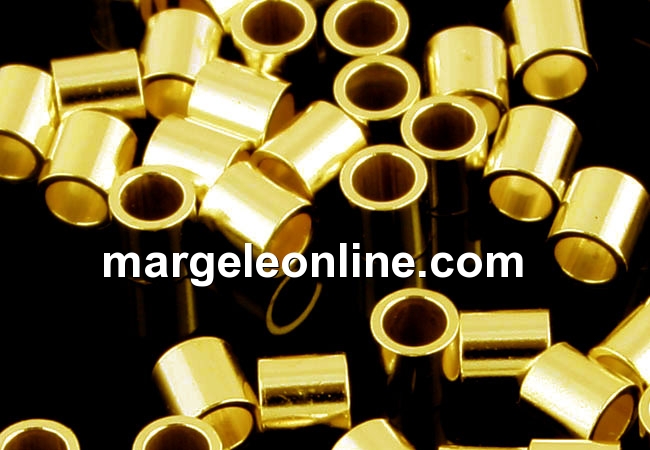 Crimp tubular, argint 925 placat cu aur, 1.5x1.5mm, interior: 1mm. Pretul este pentru 20 bucati.