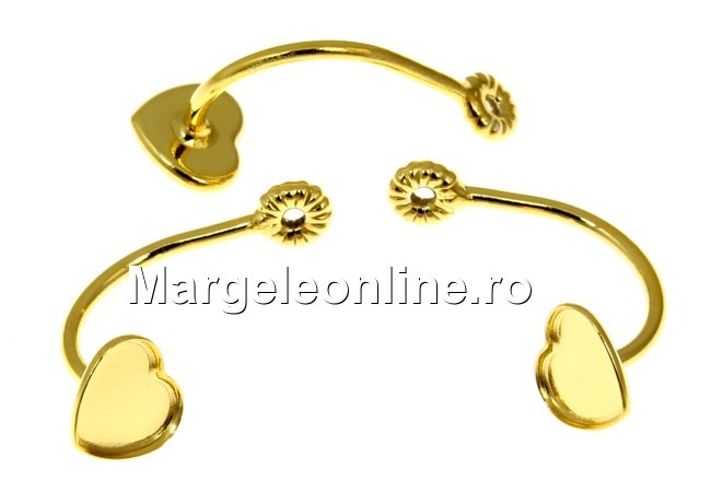Extensie pentru cercei tija argint 925 placat cu aur, pentru cabochon inima 6mm, dimensiune: 19mm. Pretul este pentru 1 pereche.