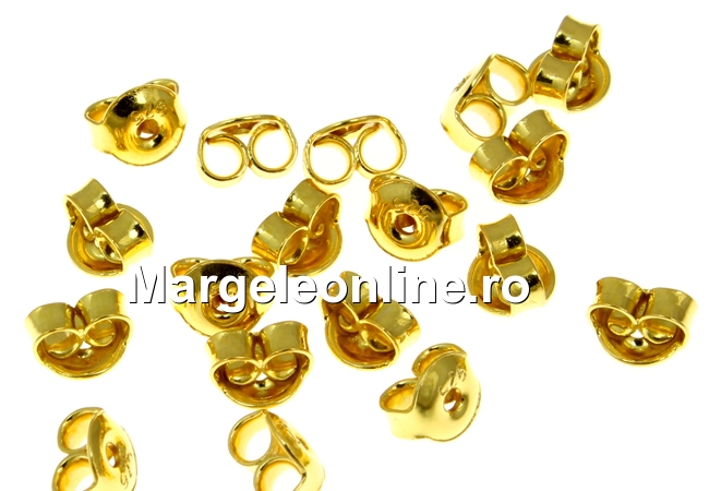 Fluturas pentru fixare cercei, argint 925 placat cu aur, marcat , dimensiune: 4.5x4mm. Pretul se refera la 4 bucati (2 perechi). Se pot regla in functie de tija cerceilor prin strangerea sau indepartarea aripioarelor.