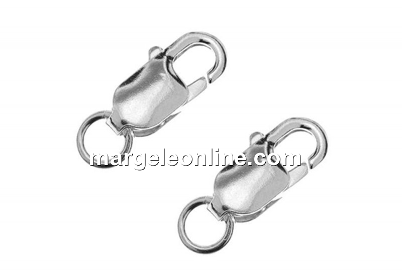 Incuietoare carabina, argint 925 placat cu rodiu, marcata, dimensiune: 8.5x4.5mm, prevazuta cu o zala nesudata: 4.5x7mm. Pretul se refera la 2 bucati.