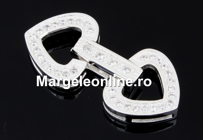 Incuietoare cu cristale, argint 925, dimensiune: 24x11mm. Pretul este pentru 1 bucata.