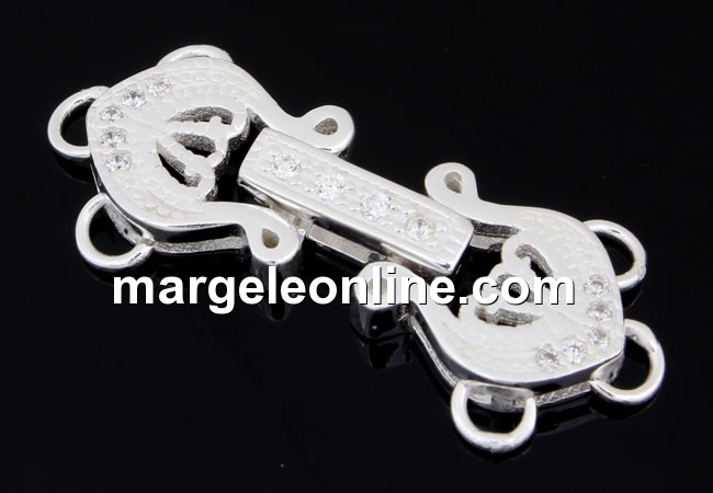 Incuietoare cu cristale, argint 925, dimensiune: 29x10mm. Pretul este pentru 1 bucata.