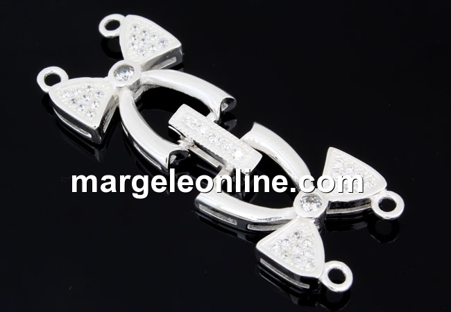 Incuietoare cu cristale, argint 925, dimensiune: 40x14mm. Pretul este pentru 1 bucata.