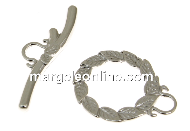 Incuietoare toggle, material: accesorii bijuterii argint 925 placat cu rodiu, marcat, dimensiune: 17.5x14mm si stick: 22.5mm. Pretul se refera la 1 bucata.