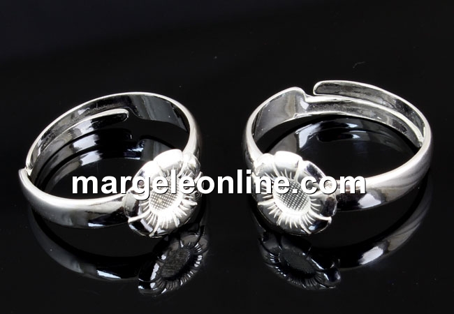 Inel argint 925 floare 9mm cu tija pt Swarovski rhinestone 3-4mm - x1buc