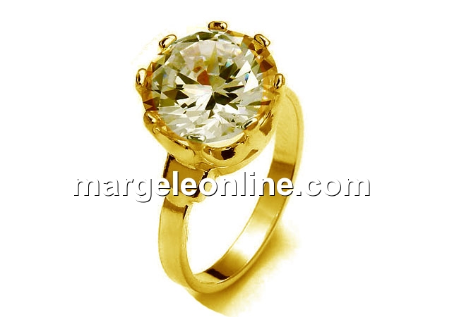 Inel cu cristal 12mm, argint 925 placat cu aur, interior 17.6mm - x1