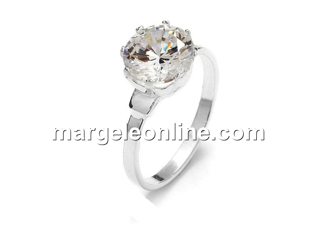 Inel cu cristal zirconia de 6mm, argint 925, interior 18.8mm - x1
