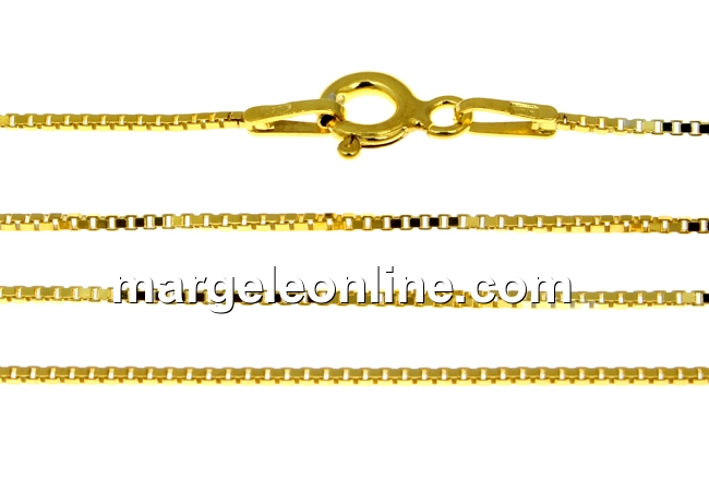 Lant din argint 925 placat cu aur, marcat, lungime: 42cm, grosime: 0.9mm, prevazut cu incuietoare. Pretul este pentru 1 bucata.