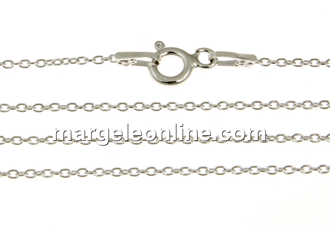 Lant din argint 925 placat cu rodiu, marcat, lungime: 50cm, grosime: 1mm, prevazut cu incuietoare. Pretul este pentru 1 bucata.