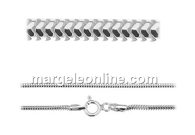 Lant din argint 925, marcat, lungime: 55mm, grosime: 1.2mm, prevazut cu incuietoare, circular si usor aplatizat. Pretul este pentru 1 bucata.
