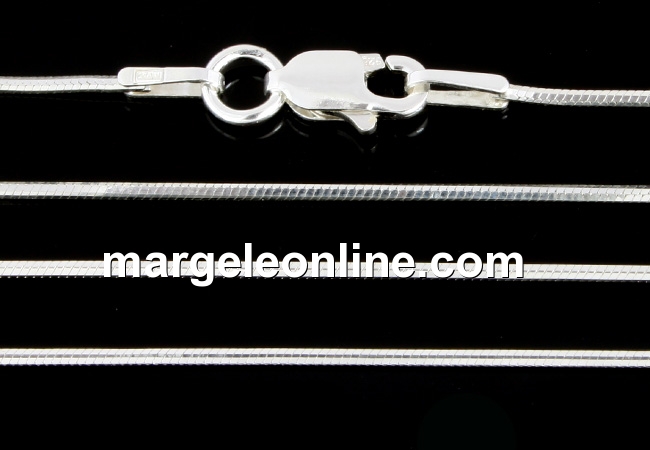 Lant din argint 925, marcat, lungime: 50mm, grosime: 0.9mm, prevazut cu incuietoare, circular si usor aplatizat. Pretul este pentru 1 bucata.