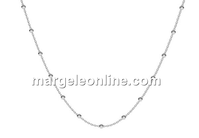 Lant din argint 925, marcat, lungime: 45mm, grosime: 1mm, prevazut cu incuietoare, diametru bilute 2mm. Pretul este pentru 1 bucata.