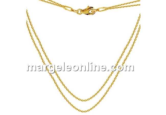 Lant dublu din argint 925 placat cu aur, marcat, lungime: 38mm si 44mm, grosime: 1mm, prevazut cu incuietoare. Pretul este pentru 1 bucata.