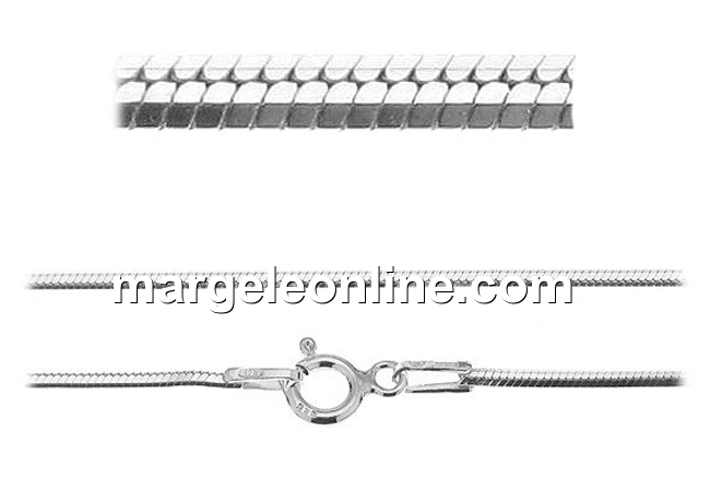 Lant din argint 925, marcat, lungime: 50mm, grosime: 1.2mm, prevazut cu incuietoare, hexagonal si usor aplatizat. Pretul este pentru 1 bucata.