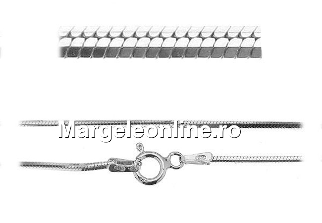 Lant din argint 925, marcat, lungime: 45mm, grosime: 1.35mm, prevazut cu incuietoare, hexagonal si usor aplatizat. Pretul este pentru 1 bucata.