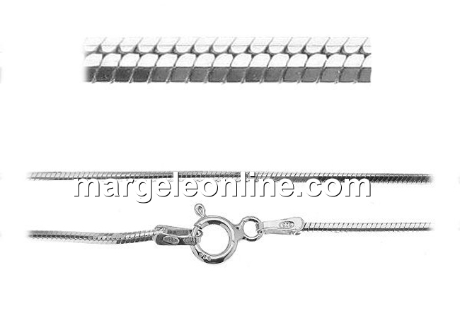 Lant din argint 925, marcat, lungime: 55mm, grosime: 1.35mm, prevazut cu incuietoare, hexagonal si usor aplatizat. Pretul este pentru 1 bucata.