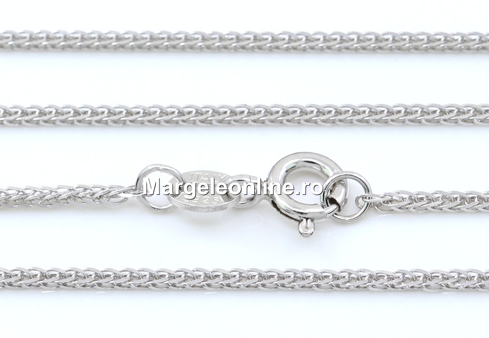 Lant din argint 925 placat cu rodiu, marcat 925, lungime: 45cm, grosime: 1.4x0.8mm, prevazut cu incuietoare. Pretul este pentru 1 bucata.