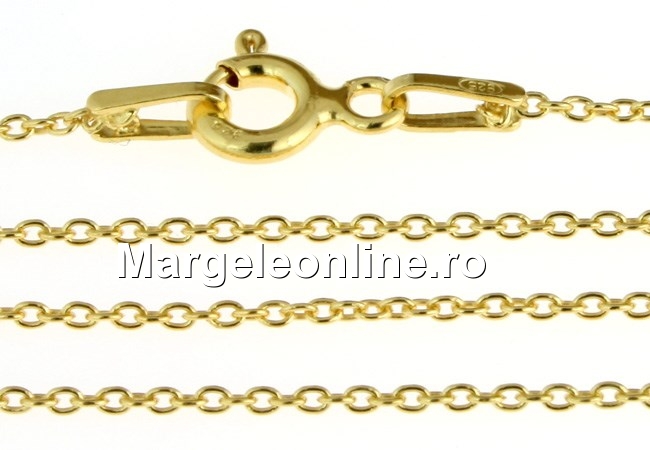 Lant din argint 925 placat cu aur, marcat, lungime: 42cm, grosime: 0.9mm, prevazut cu incuietoare. Pretul este pentru 1 bucata.