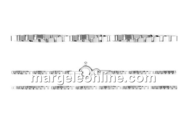 Lant din argint 925 placat cu rodiu, marcat, lungime: 50cm, grosime: 0.9mm, prevazut cu incuietoare. Pretul este pentru 1 bucata.