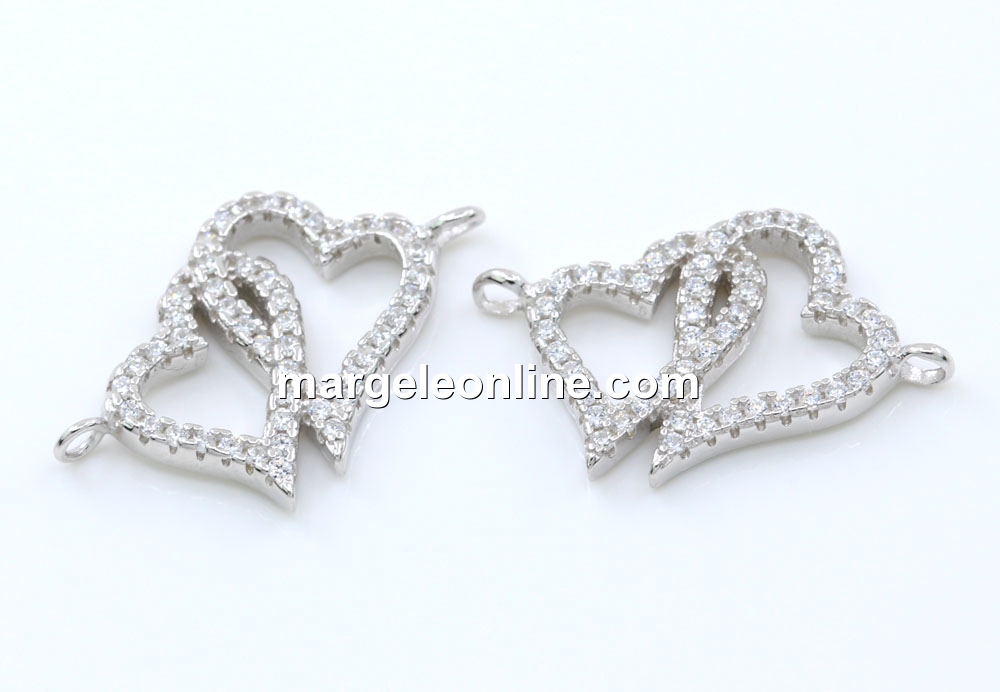 Link 2 inimi cu cristale, argint 925 placat cu rodiu, 21.5mm - x1