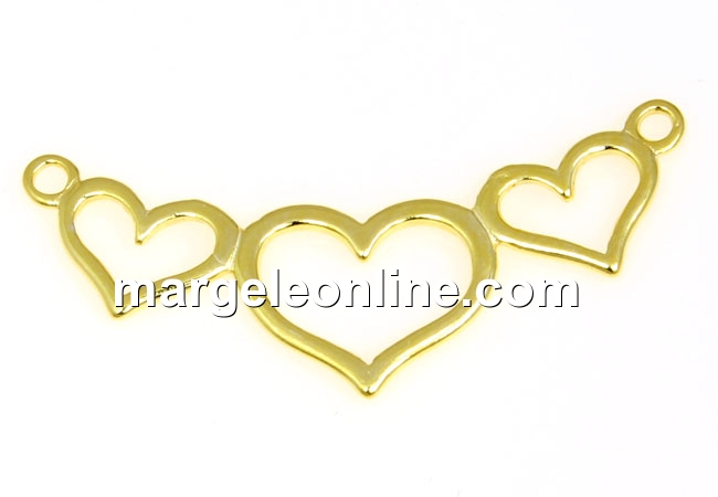 Link 3 inimi, din argint 925 placat cu aur 18K, light gold, dimensiune: 37x16mm. Pretul este pentru 1 bucata.