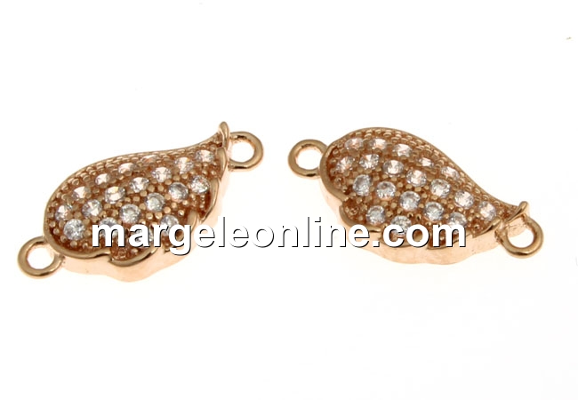 Link aripa cu cristale, argint 925 placat aur roz, 13mm - x1