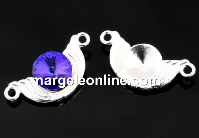 Baza link pentru rivoli 8mm : accesorii bijuterii argint 925, marcat, dimensiune: 21.5x10mm. Cristalul din imagine este cu titlu de prezentare si poate fi achizitionat din categoria Swarovski elements / Rivoli. Pretul se refera la 1 bucata.