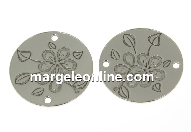 Link banut floral, argint 925 placat cu rodiu, 15mm - x1