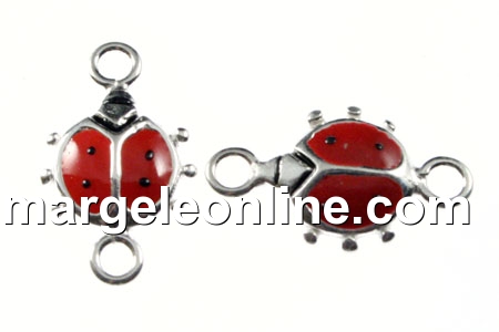 Accesoriu bijuterii link, buburuza emailata, argint 925, marcat, dimensiune: 14x8x2mm, diametru orificii: 1mm. Pretul se refera la 1 bucata.