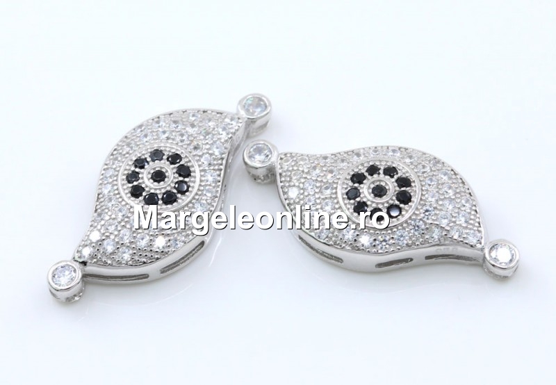 Link cu cristale, argint 925 placat cu rodiu, dimensiune: 23x10mm. Pretul se refera la 1 bucata.