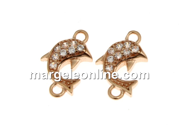 Link delfin cu cristale, argint 925 placat aur roz, 10mm - x1
