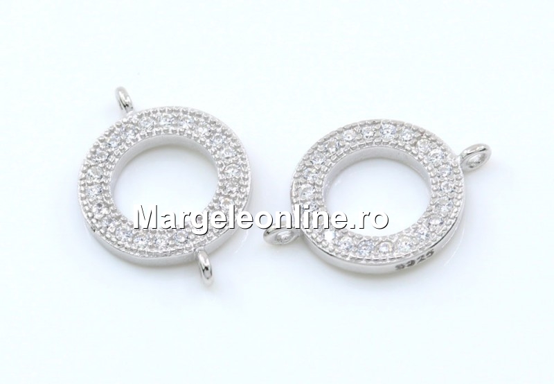 Link disc cu cristale, argint 925 placat cu rodiu, marcat, dimensiune: 13x9mm. Pretul se refera la 1 bucata.